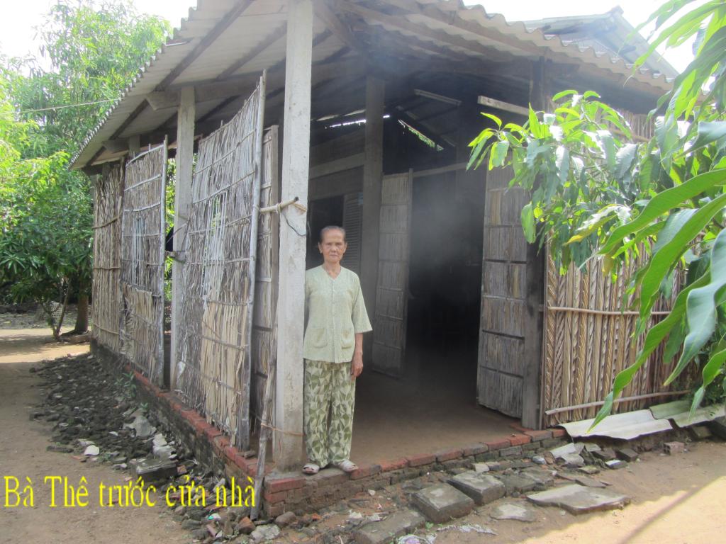 Bà Phạm Thị Thê, 70 tuổi. Số nhà 71/1 ấp Thạnh Lợi, xã Bình Thạnh, huyện Thạnh Phú. Bà sống có một mình không chồng con, bà có tật chân do bị bệnh từ nhỏ nên không làm gì được. Cuộc sống bà đang gặp nhiều khó khăn.