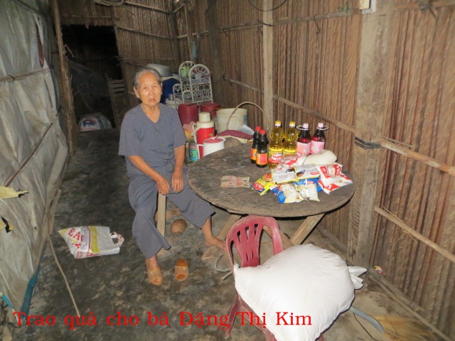Bà Đặng Thị Kim 82t ở Cồn Chim xã Thạnh Phong. Bà sống cùng 3 người cháu gái nhưng có chồng ở riêng, hàng ngày nhờ cháu cho gạo bà sống.