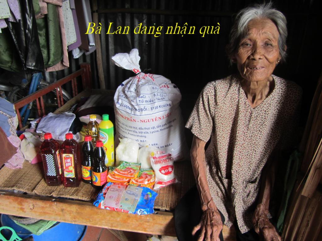 Bà Lê Thị Lan, 86 tuổi. Số nhà 220/2 ấp Thạnh Trị Thượng, thị trấn Thạnh Phú. Hiện tại bà sống một mình. Bà được hưởng trợ cấp mỗi tháng được 180.000 đồng (9 đô).