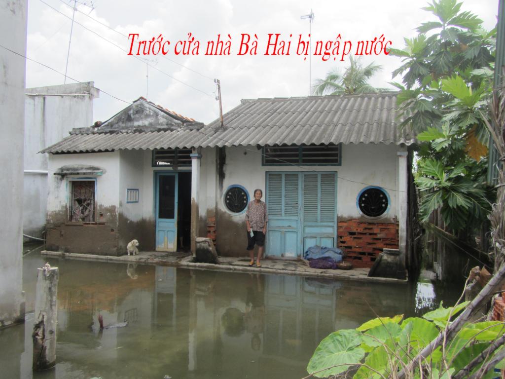 73. Mrs. Chau Thi Hai, age 80, is living by herself at 209/2 Thanh Tri Ha Hamlet, Thanh Phu Townlet, Thanh Phu District. Her house is flooded at every big rain due to the low floor. She receives VND 25,000 (USD 2.5) daily from her son who is working in Saigon.