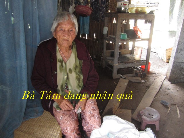 Bà Phạm Thị Tâm, 84 tuổi nhà Bà ở đậu sau kho thủy sản nên không có số nhà ở ấp Thạnh Trị Hạ. Hàng ngày bà lấy bánh của người khác bán ở bệnh viện kiếm sống qua ngày nên rất vất vả.