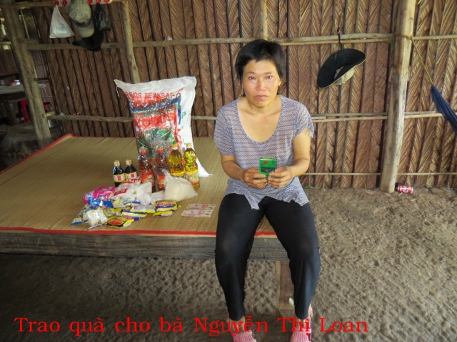 15. Mrs. Nguyen Thi Loan, age 53, of An Thanh Hamlet, An Thanh Village, Thanh Phu District, Ben Tre Province is living with her husband. They have no children. Her husband got arthritis and is working away from home. She herself is paralysed and gets a brain tumour. The family's income depends on a small garden where she grows vegetable for the market.