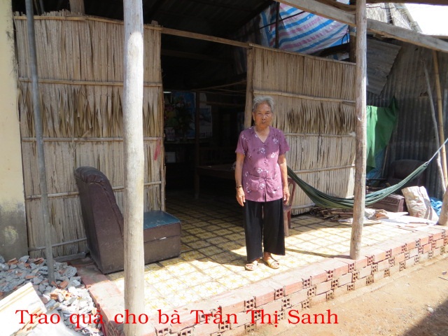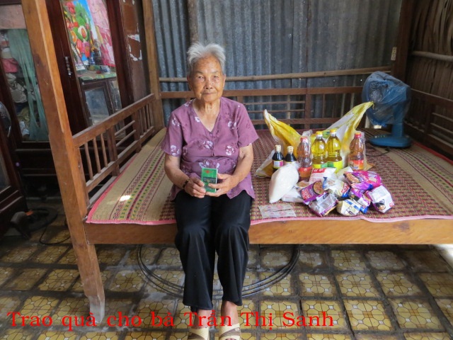 Bà Trần Thị Sanh 89t ở ấp An Thạnh xã An Thạnh huyện Thạnh Phú tỉnh Bến Tre. Ở nhà tình thương, không chồng con, sống gần nhà cháu và hàng ngày cháu nấu cơm đem qua cho ăn.