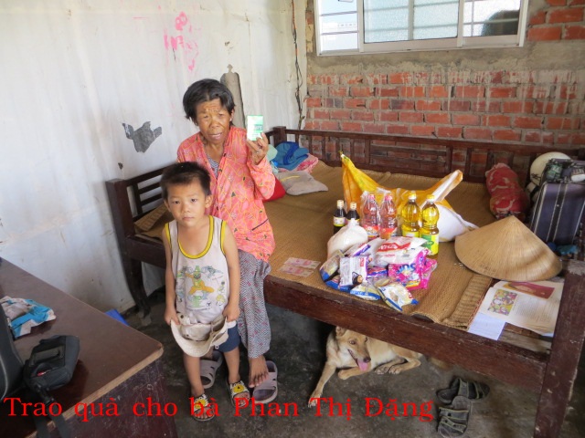 Bà Phan Thị Đặng 65t ở ấp An Thạnh xã An Thạnh huyện Thạnh Phú tỉnh Bến Tre. Chồng chết, có một người con gái có một đứa con nhỏ bỏ lại cho bà đi đâu không biết. Bà bị bệnh tim nặng nên hàng ngày nhờ cháu ở gần cho gạo ăn.