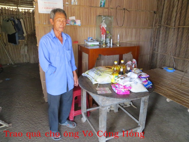 Ông Võ Công Hồng 69t nhà ở Bến Vinh xã An Thạnh huyện Thạnh Phú tỉnh Bến Tre. Vợ chết, hàng ngày ông Hồng đi bán vé số. Nhà không ruộng đất.