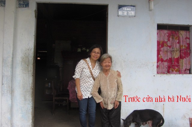 Bà Nuôi chụp hình chung với cô Hạ Uyên Chi, một trong những vị ân nhân đầu tiên của hội. Cô Chi và gia đình từ Mỹ về thăm đã phụ giúp đi phát trong chương trình này.
