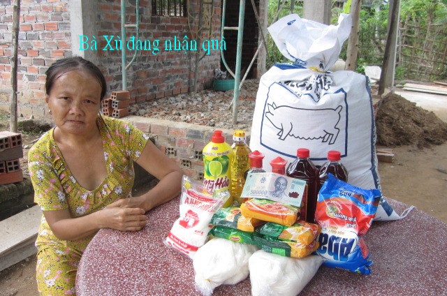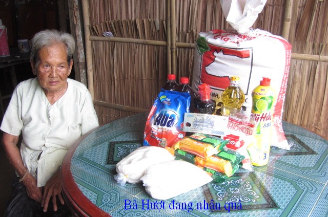 Bà Hượt chụp hình chung với cô Hạ Uyên Chi, một trong những vị ân nhân đầu tiên của hội. Cô Chi và gia đình từ Mỹ về thăm đã phụ giúp đi phát trong chương trình này.