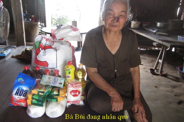 Bà Võ Thị Bùi, 88 tuổi, ấp Thạnh Quí B, xã Bình Thạnh, huyện Thạnh Phú, tỉnh Bến Tre. Bà bị bệnh ung thư lỗ mũi.