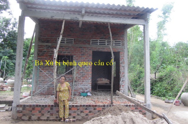 Bà Nguyễn Thị Xù, 45 tuổi. Số nhà 123/2, ấp Thạnh Quí B, xã Bình Thạnh, huyện Thạnh Phú, tỉnh Bến Tre. Bà bị bệnh quẹo xương cổ không làm gì được.