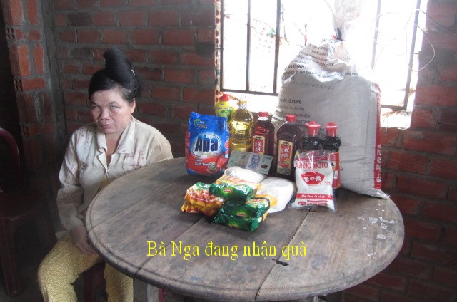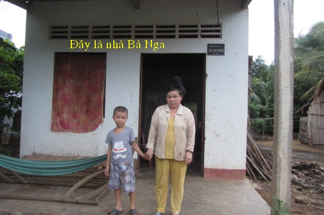 Bà Văng Thị Nuôi, 79 tuổi. Số nhà 154/1, ấp Thạnh Quí A, xã Bình Thạnh, huyện Thạnh Phú, tỉnh Bến Tre. Bà có tật ở chân, tay và mù một con mắt.