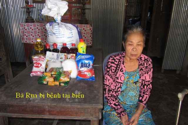 Bà Lê Thị Rua, 74 tuổi. Số nhà 2/5, ấp Thạnh Hoà B, thị trấn Thạnh Phú, huyện Thạnh Phú, tỉnh Bến Tre. Bà bị bệnh tai biến.