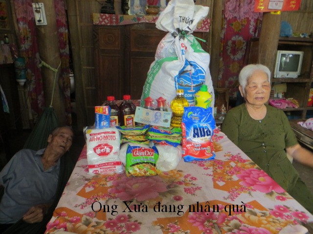 13. Mr. Loi Van Cao, 86 years old and 84 year old wife, Mrs. Ba Thi Dinh. The couple currently lives with their youngest son at 50/2 Thach Qui B hamlet, Binh Thanh village, Thanh Phu district, Ben Tre province. They are struggling to make ends meets.