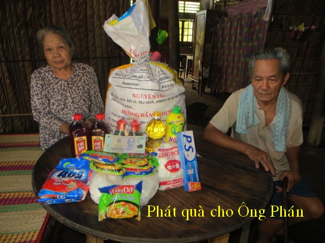 16. Ông Nguyễn Văn Phán, 76 tuổi. Ông bị bệnh tai biến đã mười năm nay. Khi đi phải chống gậy rất khó khăn. Vợ ông bà Phạm Thị Xua bị bệnh cao huyết áp. Hai ông bà sống với nhau không được con cái chăm sóc. Đang ngụ tại số nhà 85/2, ấp Thạnh Quí B, xã Bình Thạnh, huyện Thạnh Phú, tỉnh Bến Tre