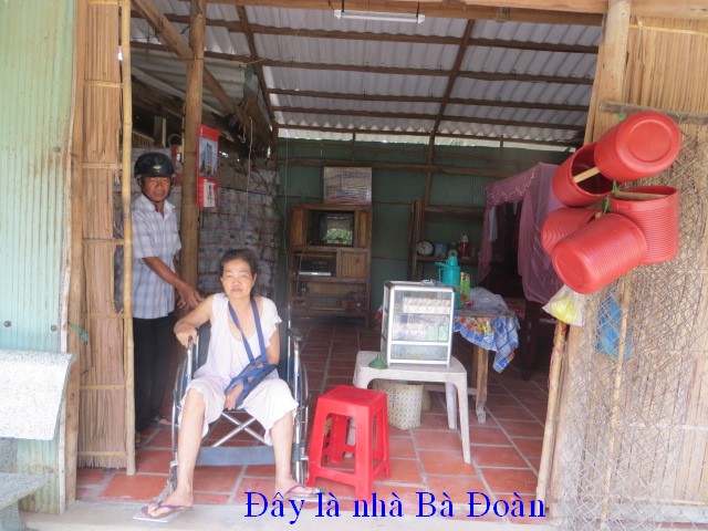 18. Bà Nguyễn Thị Đoàn, 59 tuổi. Bà bị bệnh tai biến làm liệt bên tay trái phải ngồi trên xe lăn. Bà không lập gia đình nên khi bị liệt thì bà giặt đồ bằng chân. Hiện đang sống tại só nhà 37/2, ấp Thạnh Quí B, xã Bình Thạnh, huyện Thạnh Phú, tỉnh Bến Tre.