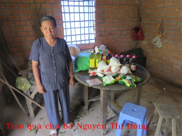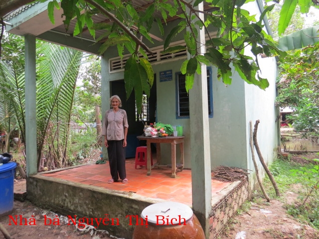 38. Bà Nguyễn Thị Bích 80t ở ấp Hòa Lộc xã Vĩnh Hòa huyện Chợ Lách tỉnh Bến Tre. Bà sống một mình không con. Không ruộng đất. Hàng ngày nhờ người cháu ở gần cho gạo ăn và bà con chòm xóm cho.