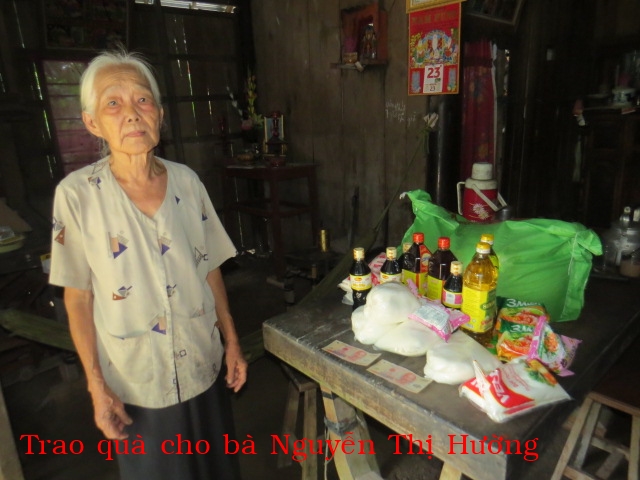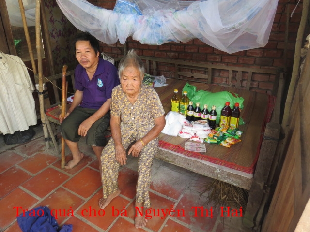 36. Mrs. Nguyen Thi Hai, age 85, of Hoa Chính Hamlet, Vinh Hoa Village, Cho Lach District, Ben Tre Province is living with her daughter/son who cannot walk due to infirmity. They live on alms from neighbours.