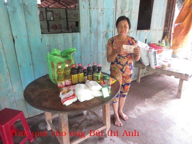 Bui Thi Anh, 60 years old, resides in Con Mit Hamlet, Thanh Phong Village, Thanh Phu District. She has no husband and children. She is temporary living in her nephew/niece’s house and lives by working odd and end jobs.