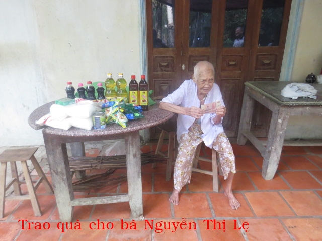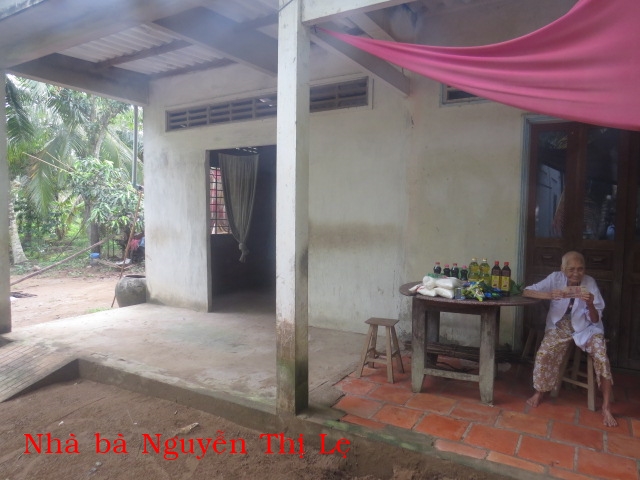 Nguyen Thi Le, 99 years old, resides in Phu Dang Hamlet, Ngai Dang Village, Mo Cay Nam District. She lives with her daughter, 60+ years old. Her daughter has no husband and children and works for hire to support her mother.
