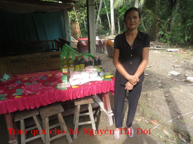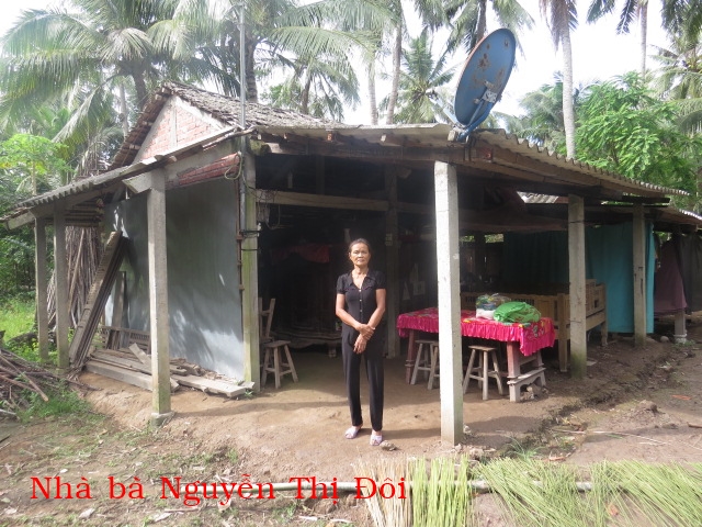 31. NGUYỄN THỊ ĐÔI, 69 tuổi, ở ấp Thới Đức, xã Thành Thới A, huyện Mỏ Cày Nam. Bà sống với một người cháu mồ côi cha mẹ nay 8 tuổi. Hằng ngày bà đi làm thuê về hai bà cháu sống.
