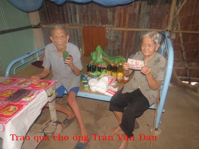 36. TRẦN VĂN ĐÂU, 84 tuổi, ở ấp Chợ Mới, xã Thạnh Ngãi, huyện Mỏ Cày Bắc. Không con, hằng ngày ông bà nhờ chòm xóm ai cho gì thì ăn nấy.