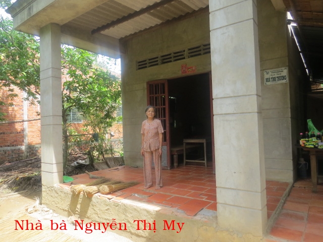 37. NGUYỄN THỊ MY, 75 tuổi, ở ấp Ông Cốm, xã Thạnh Ngãi, huyện Mỏ Cày Bắc. Bà sống với một người cháu mồ côi cha mẹ. Hằng ngày hai bà cháu chuốc cọng dừa xin của hằng xóm về bán để mua gạo.