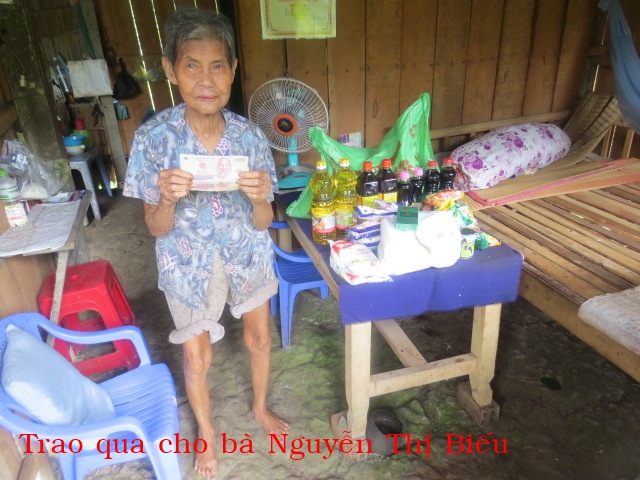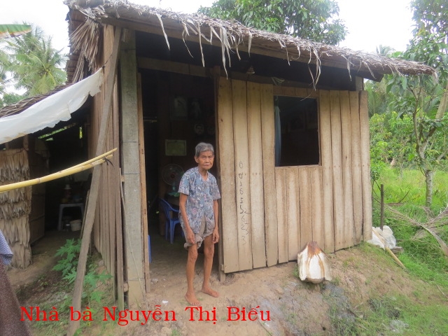 38. NGUYỄN THỊ BIẾU, 84 tuổi, ở ấp ông Thung, xã Thạnh Ngãi, huyện Mỏ Cày Bắc. Không ruộng đất và con cháu. Hằng ngày nhờ chòm xóm và ân nhân cho gạo ăn.