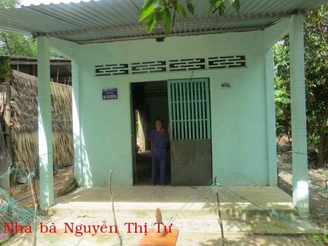 Nguyen Thi Goi, 69 years old, resides in Thoi Duc Hamlet, Thanh Thoi Village, Mo Cay Nam District. She lives with her orphan nephew/niece, who’s 8 years old. They live by her working for hire.