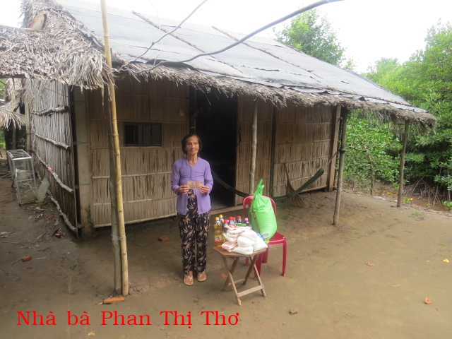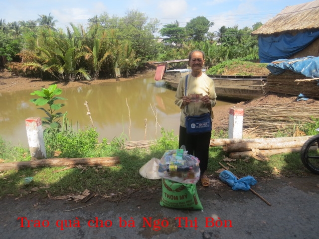 53. NGÔ THỊ BÒN, 79 tuổi, ở Cồn Chim, huyện Thạnh Phú. Không chồng con, hằng ngày bà đi bán vé số kiếm sống. Tất cả người già mỗi tháng được Chính Phủ hỗ trợ cho 180.000đ/tháng. Khoảng 9 đô. Những nhà tường là nhà tình thương do Chính Phủ hoặc mạnh thường quân hỗ trợ