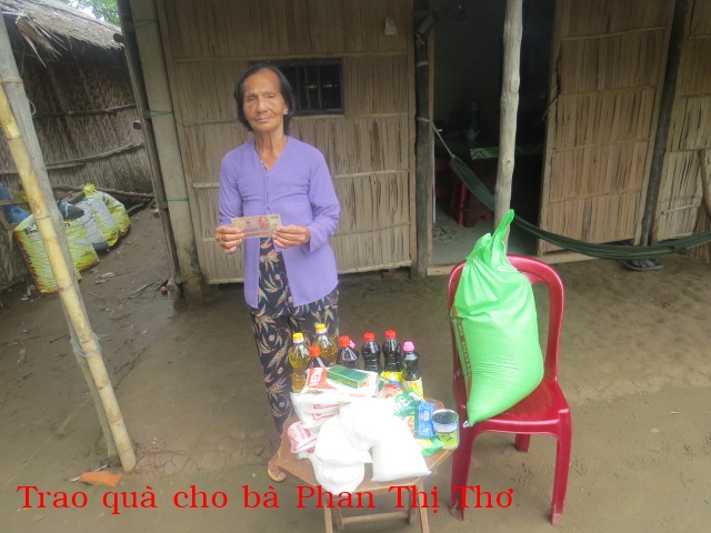 Phan Thi Thu, 69 years old, resides in Con Rung Hamlet, Thanh Hai Village, Thanh Phu District. She has no husband and children and lives nearby her nephew/niece. She lives by working odd and end jobs.
