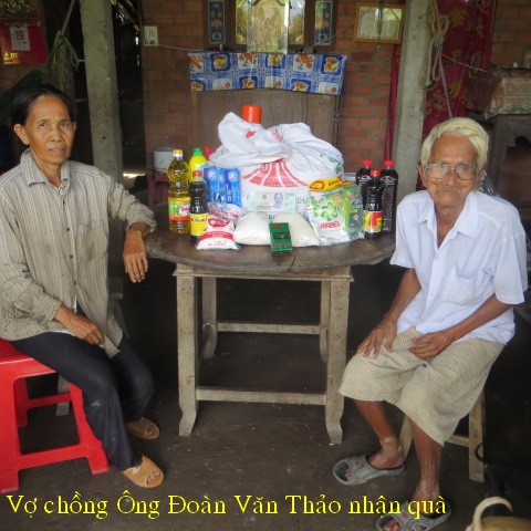 102. Đoàn Văn Thảo, sinh năm 1958, ông bị cườm nước không mổ được và hiện nay bị mù vĩnh viễn cả hai mắt, ông nhận quà nhưng không nhìn thấy được quà, hiện ngụ tại số nhà 38/3 ấp Thạnh Lại, xã Bình Thạnh, huyện Thạnh Phú, tỉnh Bến Tre.