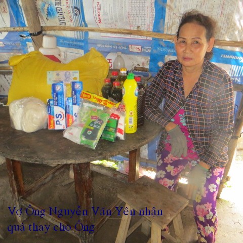 Nguyen Van Yen, born in 1966, was injured in the war and has difficult life. He resides at 35/5, An Hoa hamlet, Thanh Phu district, Ben Tre providence. He was not present when they pass out gifts; however, his wife received them for him.
