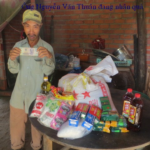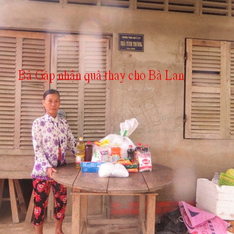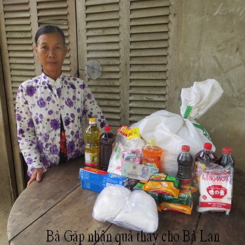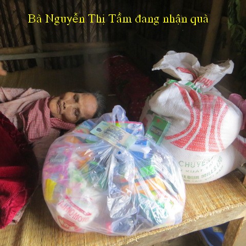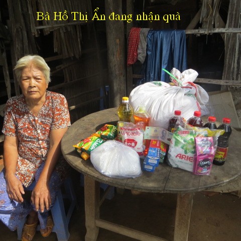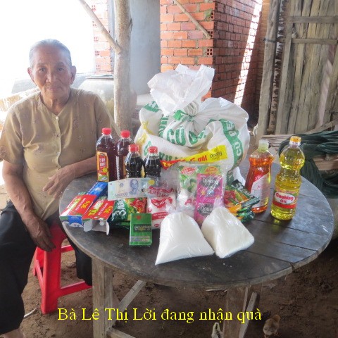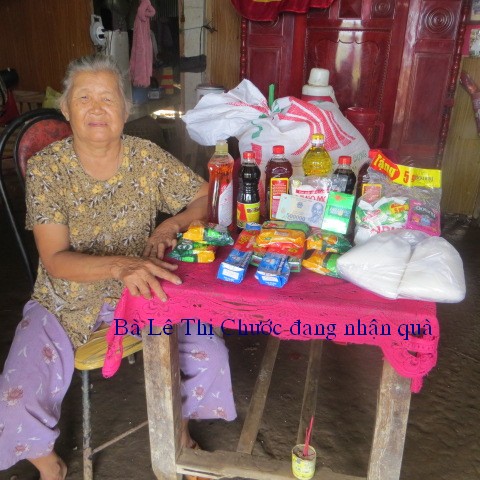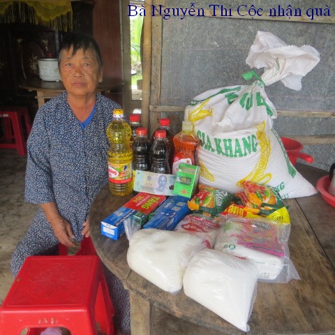 Le Thi Gap, born in 1959, receives the gifts for her mother, Nguyen Thi Lan, 81 years old, because she went to see the doctor. She resides at 78/3, Thanh Tan hamlet, Binh Thanh village, Thanh Phu district, Ben Tre providence.