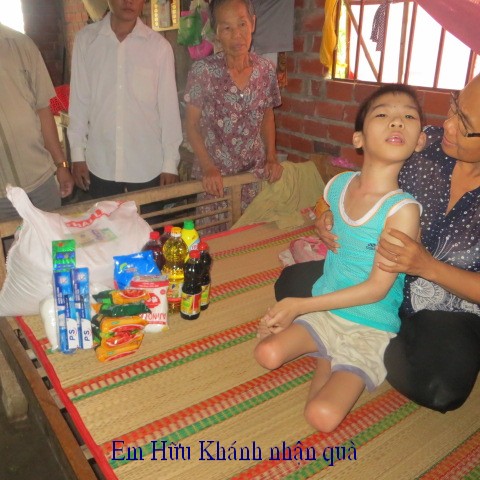 Phan Huu Khanh, born in 2005, resides at 6/3, An Hoa hamlet, An Thuan village, Thanh Phu district, Ben Tre providence. He is disabled since birth with no self reliance in all activities. His parents work far from home; he’s living with his grandparents, 70 years old.