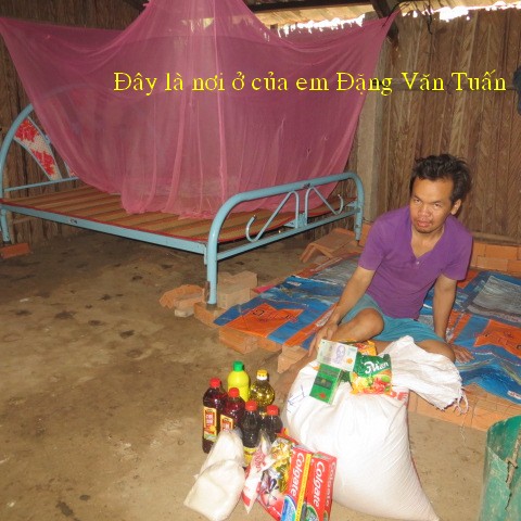 Dang Van Tuan, born in 1989, resides at Thanh Hung hamlet, My Hung village, Thanh Phu district, Ben Tre providence. He’s mentally ill with no self-reliance. His father passed away in 1997. His mother left him to get marry and left 2 sons to live with their grandmother, 80 years old. They’re having hardship and belong to the poor group.