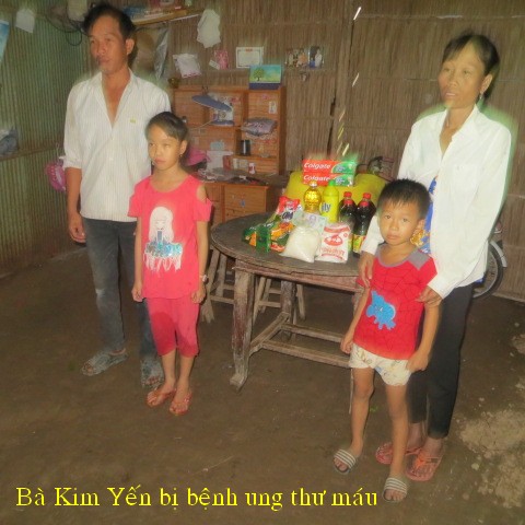 Dinh Thi Kim Yen, born in 1985, resides at 101/5, Thanh My hamlet, My An village, Thanh Phu district, Ben Tre providence. He’s having chronic anemia, diabetic, weak heart, osteoarthritis, high liver enzyme, and high chloresterol. She’s living with her husband and 2 children. She and her children have chronic anemia; every month, they have to go to the hospital for checkup and get medicines.