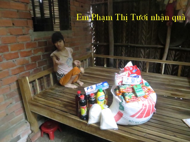 Pham Thi Tuoi, born in 1991, resides at 13/2, Thanh Khuong hamlet, My Hung village, Thanh Phu district, Ben Tre providence. She’s crippled since birth and unable perform daily tasks.