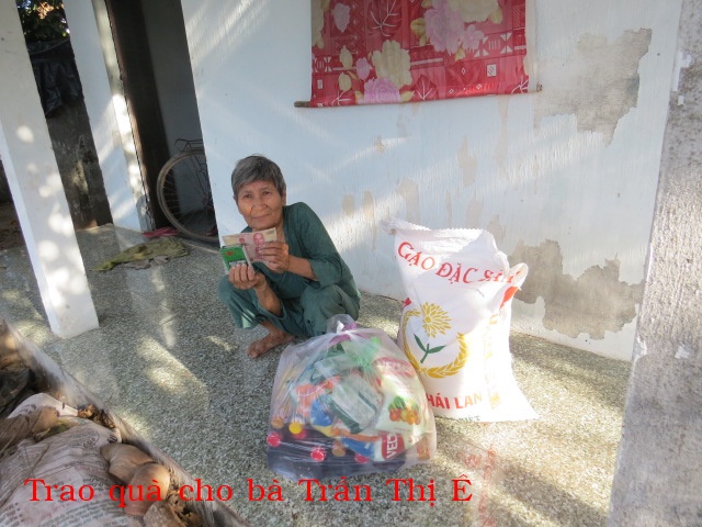 Tran Thi E, 68 years old, resides in Con Mit hamlet, Thanh Phong village, Thanh Phu district, Ben Tre providence. She lives by herself and no husband. She sells street stick rice for a living.