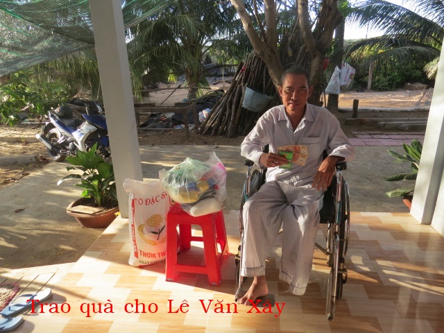 Le Van Xay, 55 years old, resides in Con Bun hamlet, Thanh Hai village, Thanh Phu district, Ben Tre providence. He is diabetic and had one leg cut off. He’s living with is niece family and they take care of him.
