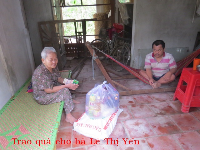 12. Bà Lê Thị Yến 80t, ở ấp Tích Đức, xã Khánh Thạnh Tân, huyện Mỏ Cày Bắc, tỉnh Bến Tre. Bà bị liệt nửa người, con trai bị mù, hàng ngày nhờ hàng xóm cho gạo ăn.