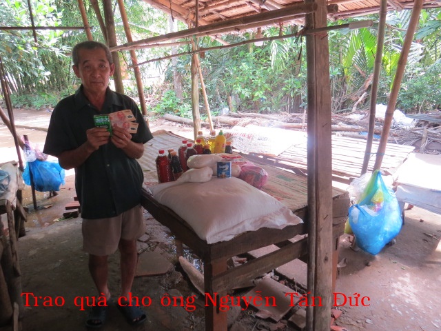 27. Ông Nguyễn Tấn Đức 65t, ở ấp Tân Hưng, xã Khánh Thạnh Tân, huyện Mỏ Cày Bắc, tỉnh Bến Tre.Ông sống với vợ, không con, hàng ngày ông đi chợ mua rau cải về bán. Hiện tại vợ ông bị bệnh ung thư đang nằm bệnh viện không nhà.