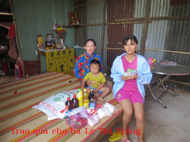 Le Thi Trang, 38 years old, resides in Giong Dai hamlet, Thanh Phong village, Thanh Phu district, Ben Tre providence. Her husband passed away 10 days ago due to kidney failure and leaving her to care for 3 children. She works whatever job is available.