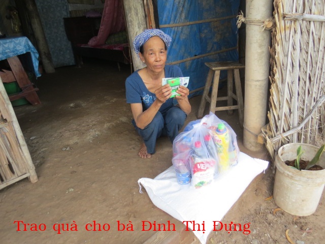 80. Bà Đinh Thị Đựng 63t, ở Cồn Lợi, xã Thạnh Hải, huyện Thạnh Phú, tỉnh Bến Tre. Bà sống một mình, không chồng, con, hàng ngày ai thuê gì làm nấy.