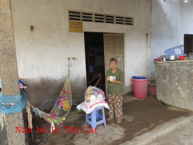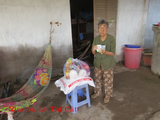 82. Bà Lê Thị Cát 80t, ở Cồn Rừng, xã Thạnh Hải, huyện Thạnh Phú, tỉnh Bến Tre. Bà sống một mình, có cháu ở gần hàng ngày nấu cơm cho bà ăn.