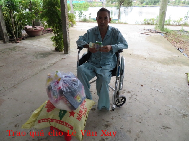 - Ông Lê Văn Xay 54t ở Cồn Bửng xã Thạnh Hải huyện Thạnh Phú tỉnh Bến Tre. Ông bị tiểu đưởng biến chứng nên cưa hết 1 chân, hàng ngày bà ở nhà ai thuê gì thì làm nấy.
