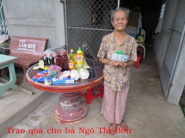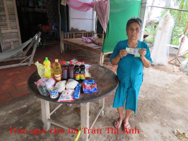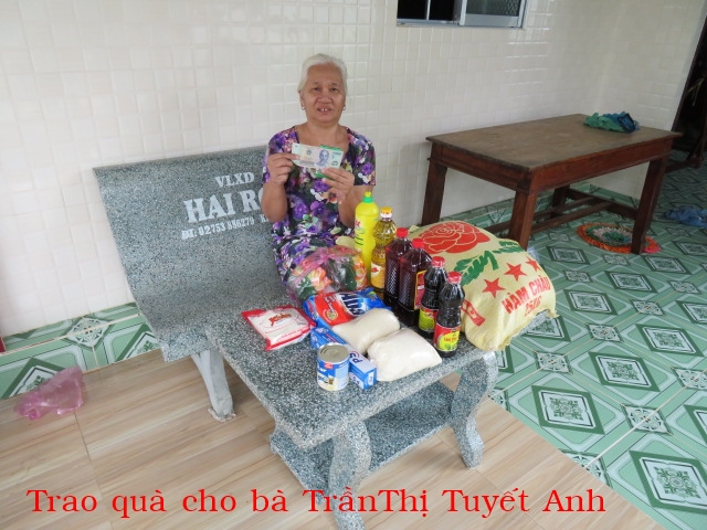- Bà Trần Thị Tuyết Anh 65t ở Bồn Bồn xã Thạnh Phong huyện Thạnh Phú tỉnh Bến Tre. Bà bị tật bẩm sinh đi không được chỉ bò, không chồng con. Hiện tại ở đậu nhà cháu và cháu nuôi.