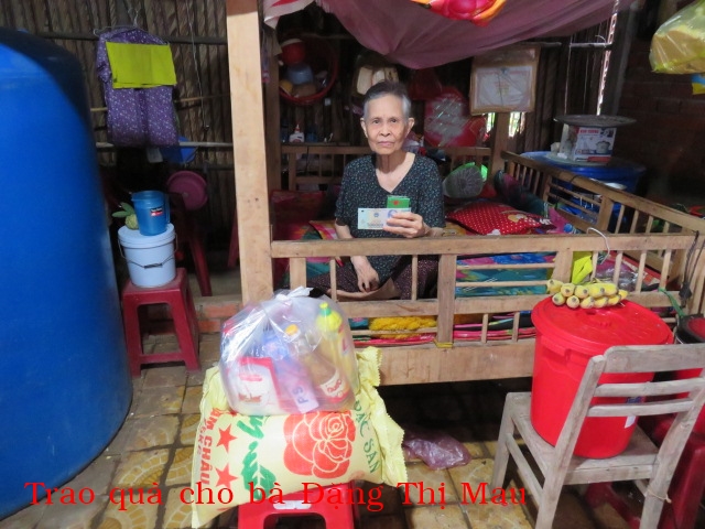 - Bà Đặng Thị Mau 75t ở Bồn Bồn xã Thạnh Phong huyện Thạnh Phú tỉnh Bến Tre. Bà bị tay biến nằm 1 chỗ, bà sống với người con trai hàng ngày đi làm phụ hồ.