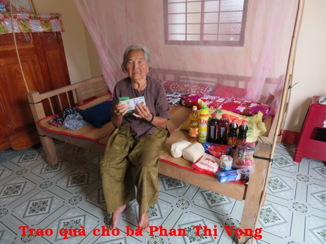 12. Bà Phan Thị Vọng 85t ở Cồn Điệp xã Thạnh Phong huyện Thạnh Phú tỉnh Bến Tre. Bà sống một mình, hàng ngày nhờ chòm xóm cho gạo ăn.