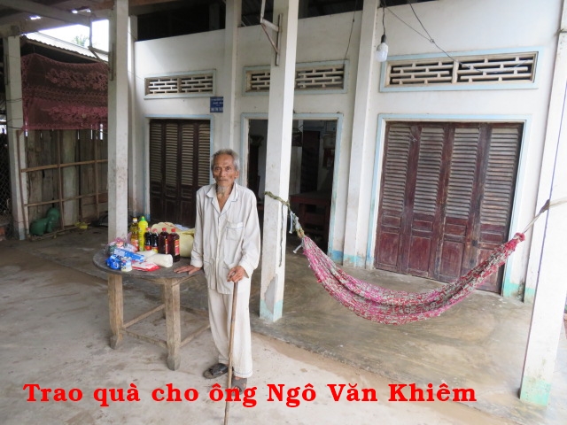 13. Ông Ngô Văn Khiêm 92t ở Cồn Điệp xã Thạnh Phong huyện Thạnh Phú tỉnh Bến Tre. Ông sống một mình hàng ngày nhở cháu ở gần nấu cơm cho ăn.