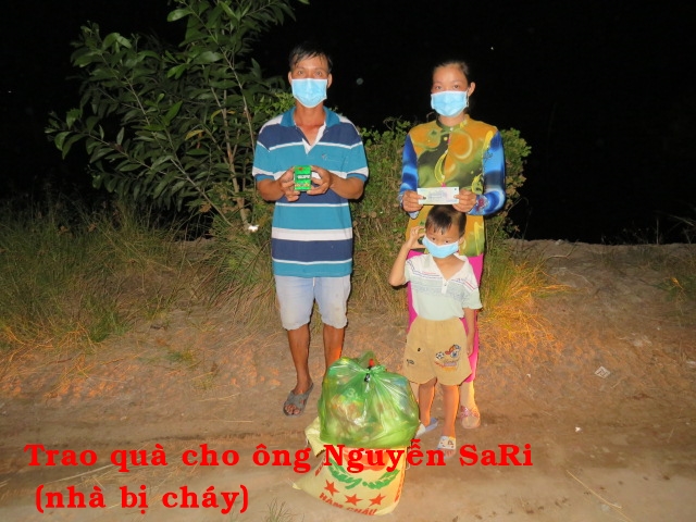 135. Ông Nguyễn SaRi 37t ở ấp An Hòa B xã Mỹ An huyện Thạnh Phú tỉnh Bến Tre. Gia đình có 3 người: vợ và 1 con. Cách nay 2 ngày căn nhà của ông bị cháy hoàn toàn, tài sản bị thêu rụi chỉ còn bộ đồ mặt trên người nên rất cần cái ăn cái mặc.