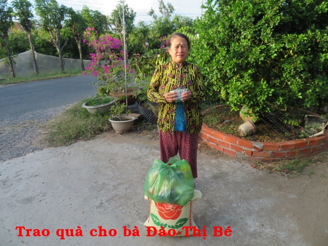 130. Bà Đào Thị Bé 65t ở Cồn Chim xã Thạnh Phong huyện Thạnh Phú tỉnh Bến Tre. Bà có chồng, vì nghèo chồng bỏ. Hiện tại đang sống một mình.
